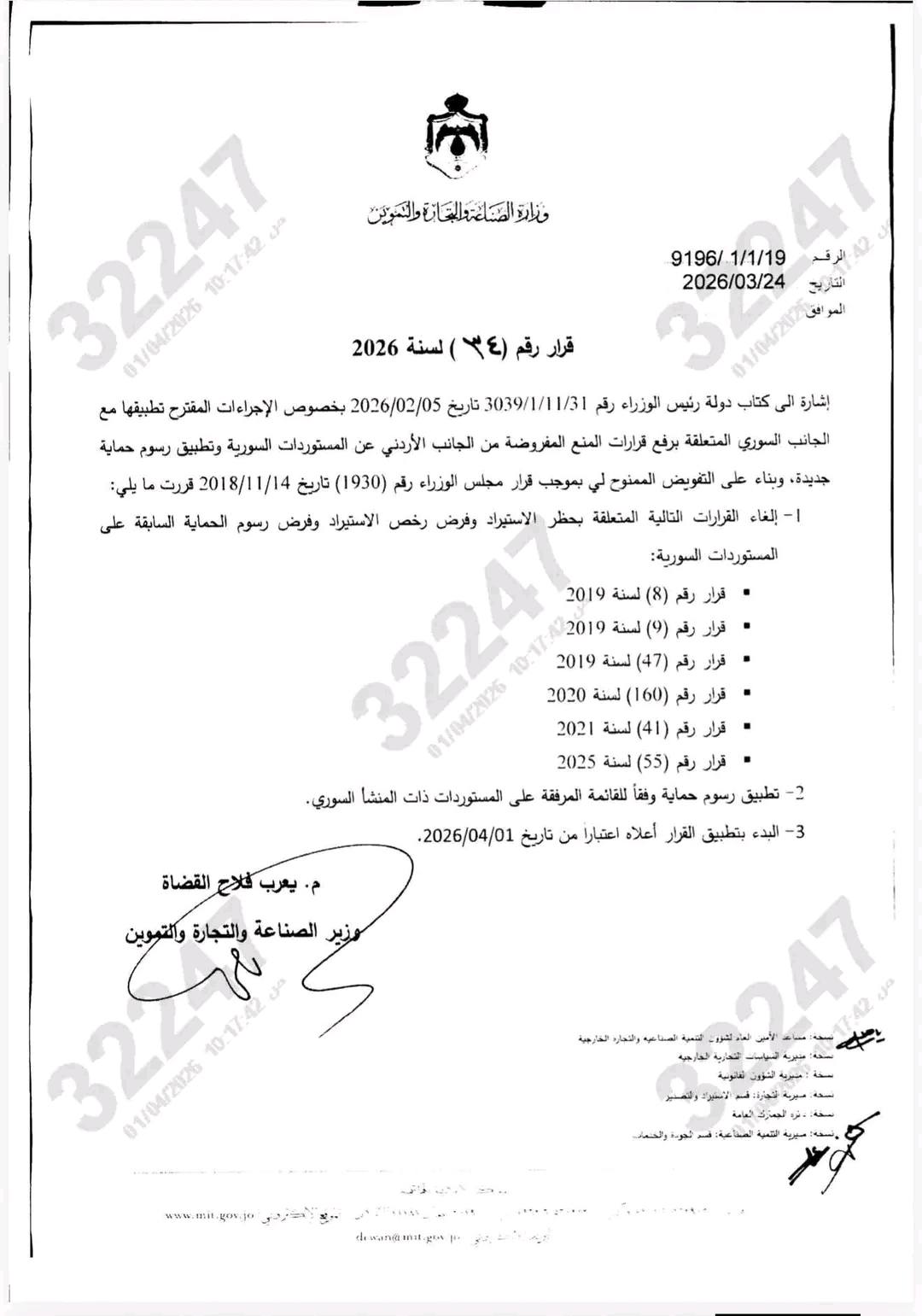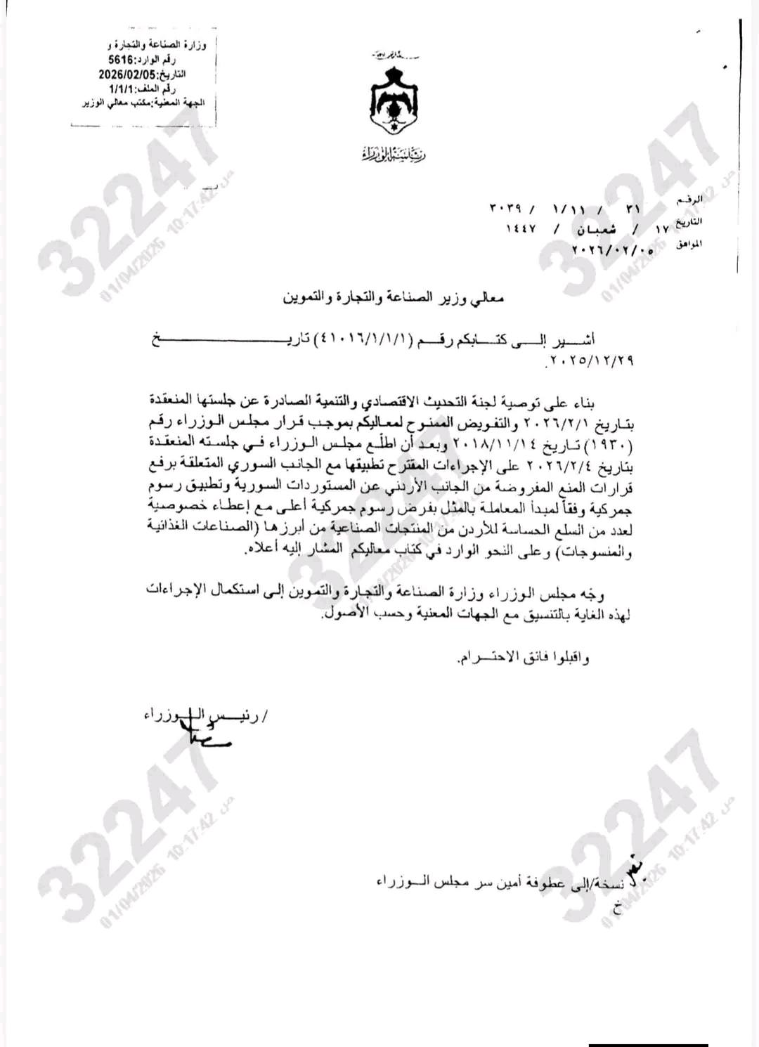 هام ... الأردن يسمح بدخول المنتجات السورية التي كانت ممنوعة سابقاً، ويشكل هذا القرار خطوة هامة على صعيد تعزيز وصول المنتجات السورية للمزيد من الأسواق الخارجية.